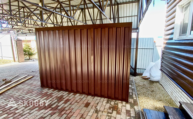 Мы обратились в компанию SKOGGY. За неделю нам всё изготовили, а сегодня привезли и буквально за два часа собрали. Так что, кому нужно быстрое готовое решение, обращайтесь. Можно хранить всё что угодно: технику, автомобили, колёса, лопаты, тачки. Вот такое решение.