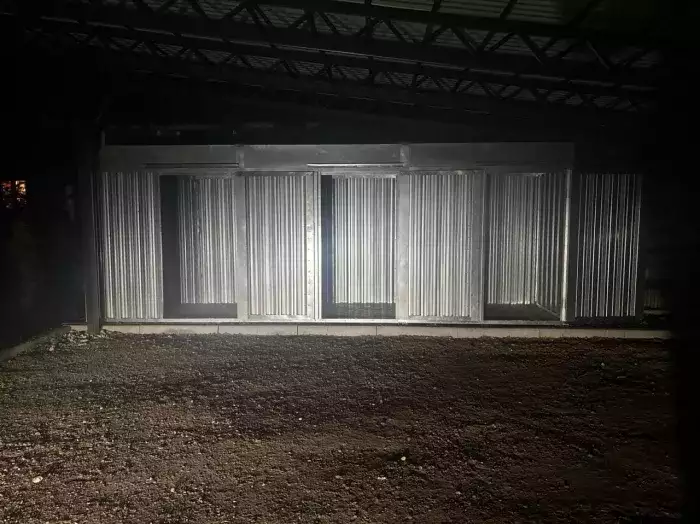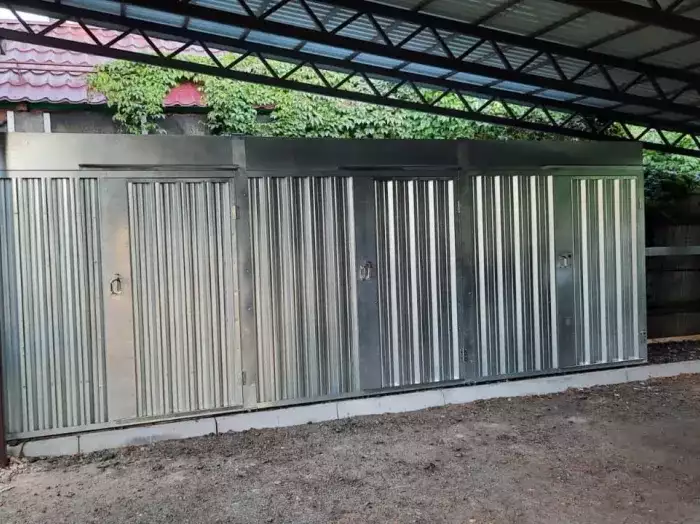 Нами была изготовлена конструкция дровницы размером 1,03 х 2,5 х 2,1 м с уменьшенной воротной группой размером 1,5 м в в светло-сером цвете RAL 7025.