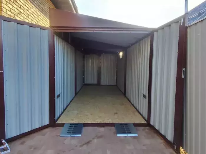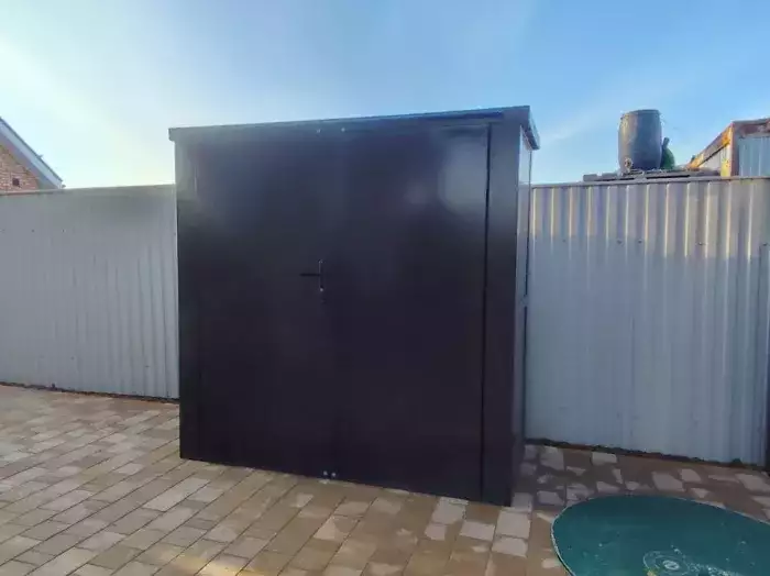 Нами были изготовлены две люксовые конструкции размером 2,03 х 3,15 х 2,4 м с плоской крышей в светло-сером цвете RAL 7004.