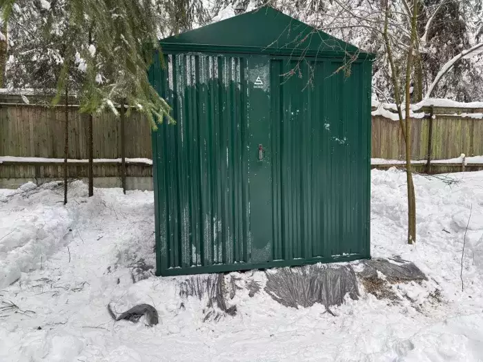 Заказчица этого проекта рассматривала приобретение хозблока на новый участок, где еще идет строительство жилого дома. Ей было важно, чтобы было куда спрятать зимой технику.
