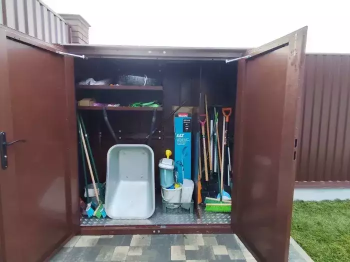 Проект: 3-метровый хозблок для хранения вещей с плоской крышей в цинковом цвете.