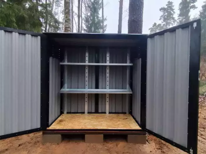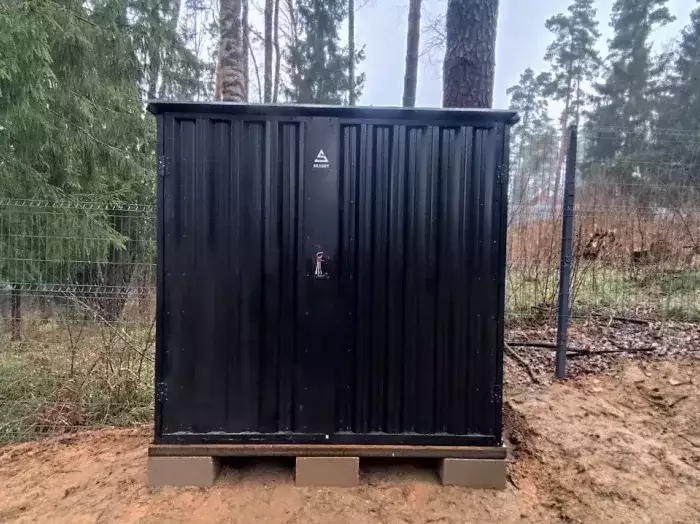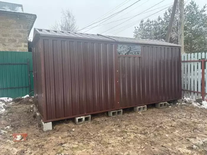 Доставляли хозблок на участок заказчика манипулятором в разобранном виде. Нашими специалистами предоставлялись услуги по установке бетонных блоков и сборке изделия.