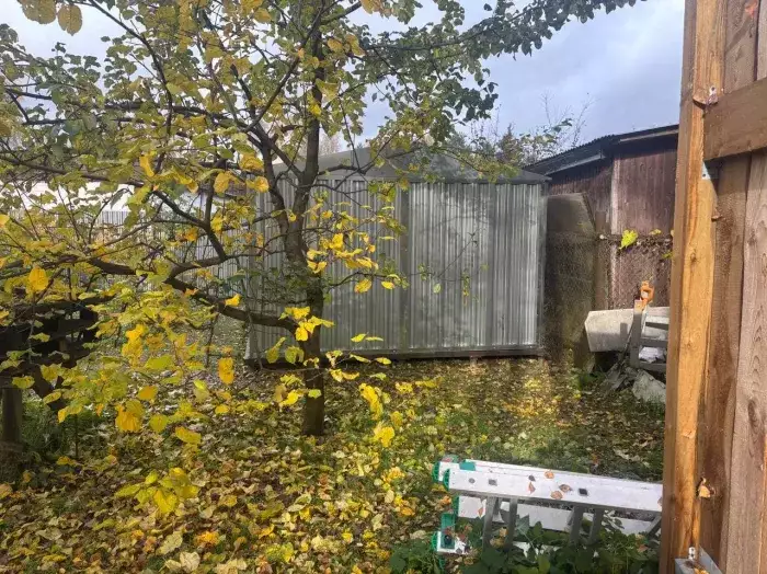 Проект: 4-метровый хозблок для хранения садовых принадлежностей в цвете "слоновая кость".