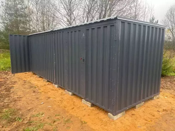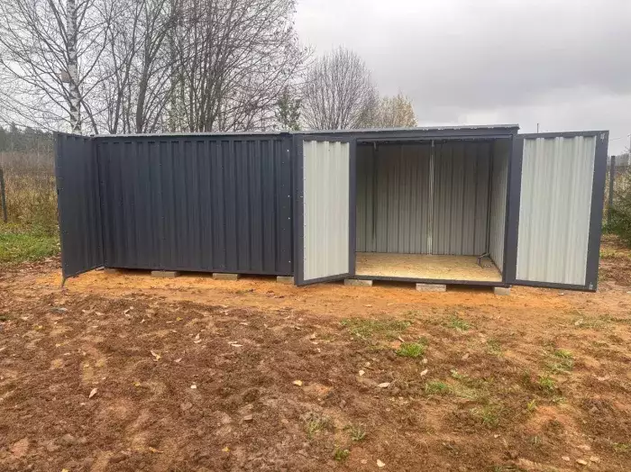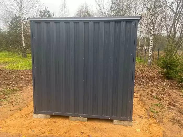 Но, мы не из тех, кто сдается. Мы нашли выход, предложив нашему герою индивидуальную конструкцию: ширина 3м, длина 4м. Оттенок будущей постройки выбрали RAL7024 из нашей палитры цветов, который сочетался с цветом забора на участке. Площадку под будущий хозблок заказчик подготовил самостоятельно. Сборку конструкции произвели в день отгрузки. По времени сборка заняла около 3 часов.