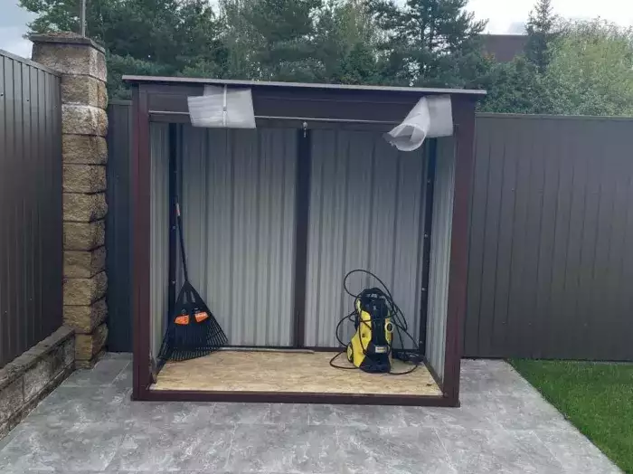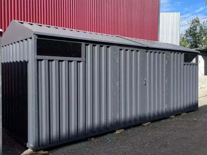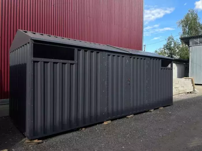 Изготовили конструкцию длиной 4 м с двускатной крышей и окном для дополнительного освещения. Особенностью выполненного проекта стал нанесенный на конструкцию принт с изображением героев из фильма «Звездные войны» с одной стороны и логотипом известной музыкальной группы «Король и Шут» – с другой. У хозяина участка отличный вкус! Получилось очень круто.