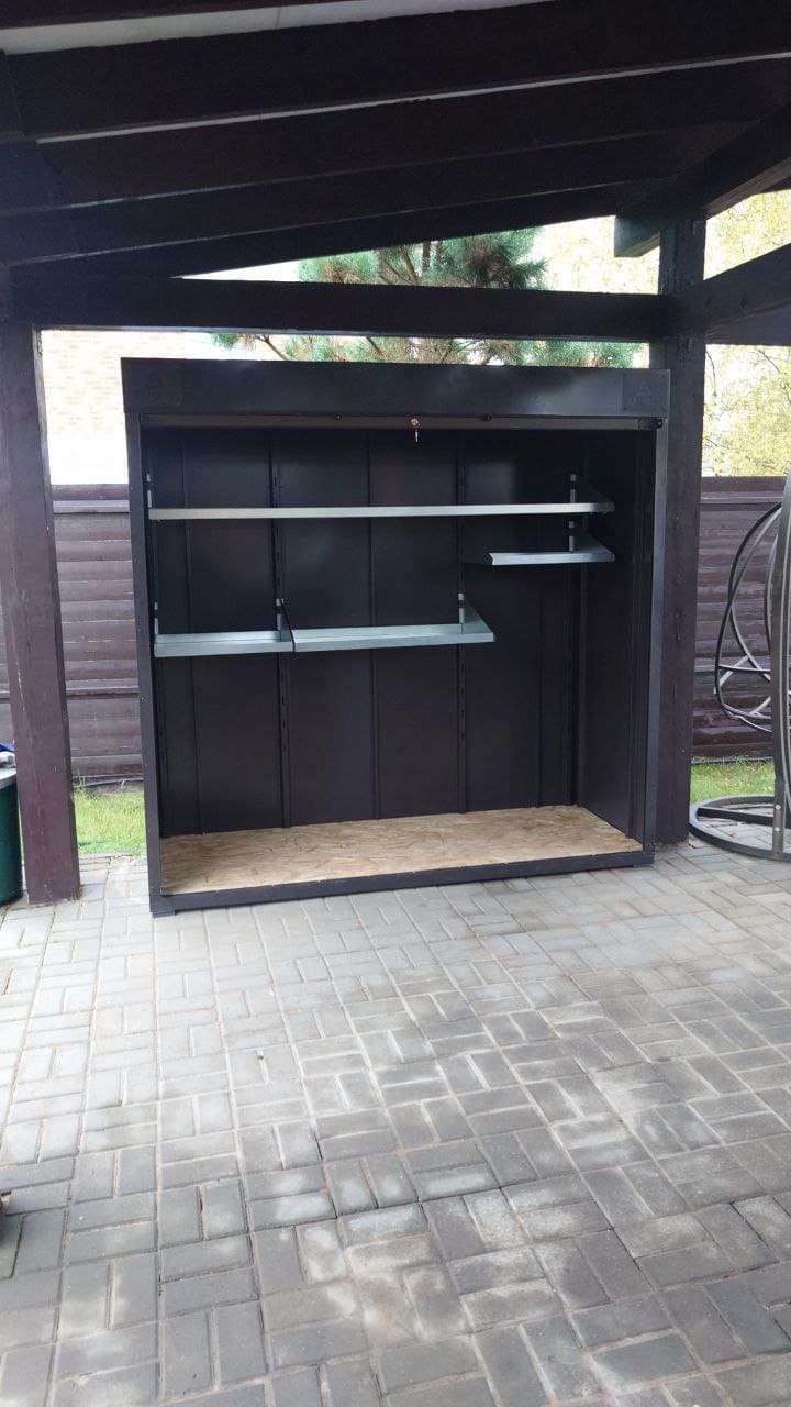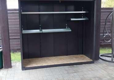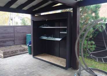 Заказчику этого проекта на участок был необходим роллетный шкаф под навес для хранения различных хозяйственных вещей.