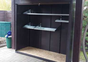 Дополнительно шкаф оборудован полом из OSB и удобными полками для хранения.
