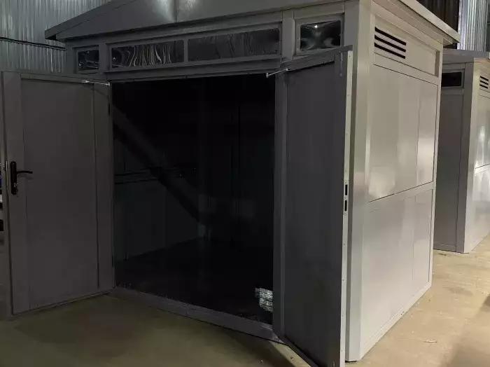 Заказчику этого проекта понадобился на участок гараж для мототехники. Ему понравилась наша секционная модель, так как в будущем он планирует переставлять конструкцию на другое место и основательно подготавливать площадку под гараж. Также заказчику понравилось то, что при необходимости можно будет увеличить размер постройки.