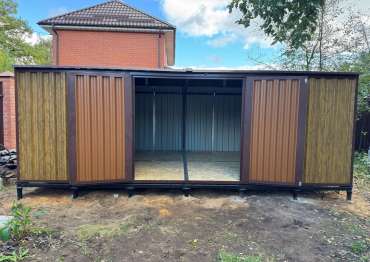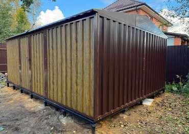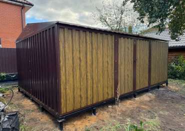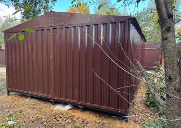 Доставляли хозблок на участок заказчика на манипуляторе в разобранном виде. Нашими специалистами предоставлялась услуга по сборке.