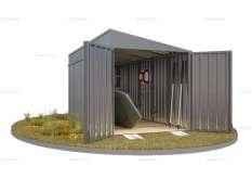 • Прочные. Конструкция железного модуля разработана с учётом допустимых нагрузок, возникающих во время эксплуатации изделия в качестве лодочного домика. Например, на квадратный метр пола может давить до 500 кг, а плоская крыша выдерживает массу снеговой «шапки» 250 кг/кв.м. Этого вполне достаточно, чтобы безопасно пройти зимний период.