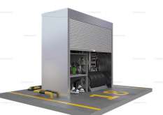 - Металлический роллетный шкаф. Удобен для использования в автомастерской, гараже, помещении с ограниченным пространством. За счет того, что рольставни значительно экономят место во время открытия/закрытия.